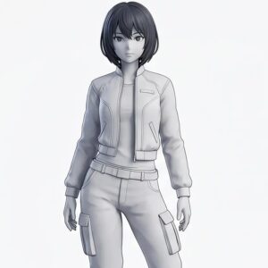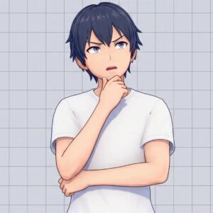 anime poses: Explore this dramatic 3D anime character shocked expression, shown from front, side, and back perspectives. This pose serves as an impactful anime pose reference for conveying surprise or alarm in your character designs.